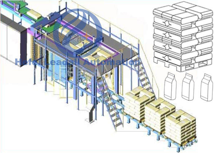 PLC Control Automatic Palletiser Machine For Bags Boxes High Stacking Capacity Images |